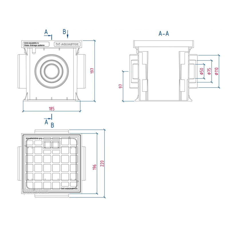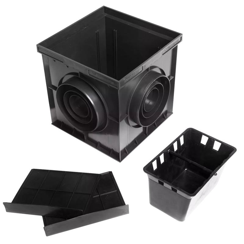 Универсальный дождеприемник 200x200 мм, высота 197 мм. Имеет выходы для подключения труб ØØ 50, 75, 110 мм. В комплекте корзина для сбора мусора и две перегородки-сифон для запирания неприятных запахов внутри системы. Дождеприемники могут устанавливаться друг на друга для укладки водоотводной трубы ниже глубины промерзания. Несколько дождеприемников могут использоваться как самостоятельный дренажный колодец. Подходит для приусадебных участков, садовых и парковых зон (класс нагрузки до B125 — до 12,5 т./м²). Водоприемная решетка (при сборе воды с крыши) или крышка (если используется как дренажный колодец) приобретаются отдельно!