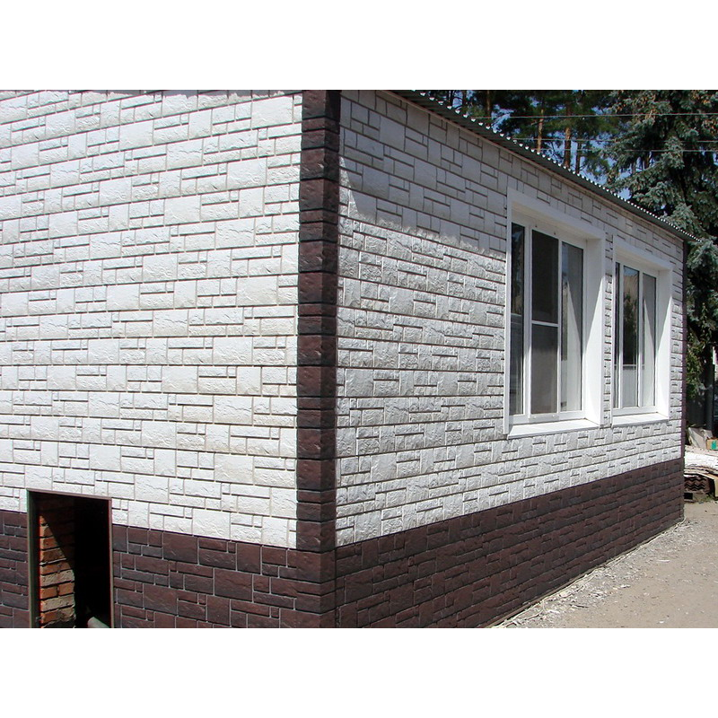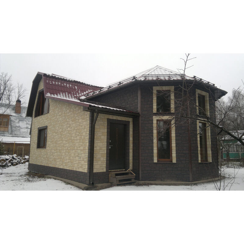 Фасадные панели могут использоваться как для оформления фасада целиком, так и для облицовки фундамента, выделения отдельных деталей.