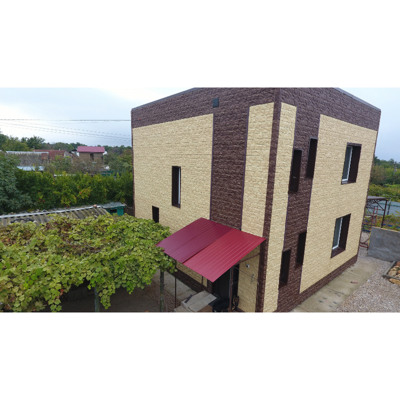 Фасадная панель в фактуре дикого скального тесаного камня из коллекции FELS от Деке. Крупный камень, взятый за основу панели, придаст дому объем. Панель изготовлена из полипропилена методом литья под давлением, имеет небольшой вес, поэтому не создает дополнительной нагрузки на несущие конструкции. За счет специальной трехступенчатой системы окраски, материал невосприимчив к УФ-лучам и атмосферным осадкам. Конструкция панели усилена ребрами жесткости, что обеспечивает повышенную устойчивость к механическим нагрузкам. Панели легко и надежно скрепляются между собой, монтируются на обрешетку. Монтаж можно производить в любое время года, за исключением сильных морозов (не ниже -15°С)