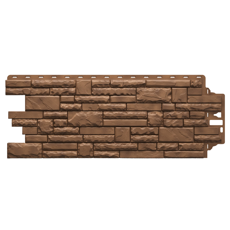 Фасадная панель в фактуре колотого слоистого песчаника с переливающейся текстурой поверхности из коллекции STERN от Деке. Камни разного размера придают панелям максимальное соответствие натуральной каменной кладке. Панель изготовлена из полипропилена методом литья под давлением, имеет небольшой вес, поэтому не создает дополнительной нагрузки на несущие конструкции. За счет специальной трехступенчатой системы окраски, материал невосприимчив к УФ-лучам и атмосферным осадкам. Конструкция панели усилена ребрами жесткости, что обеспечивает повышенную устойчивость к механическим нагрузкам. Панели легко и надежно скрепляются между собой, монтируются на обрешетку. Монтаж можно производить в любое время года, за исключением сильных морозов (не ниже -15°С)