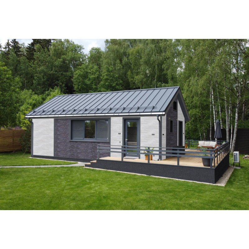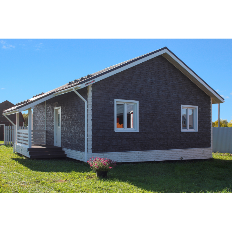 Фасадные панели могут использоваться как для оформления фасада целиком, так и для облицовки фундамента, выделения отдельных деталей.