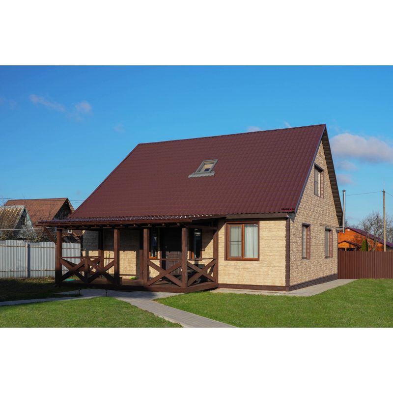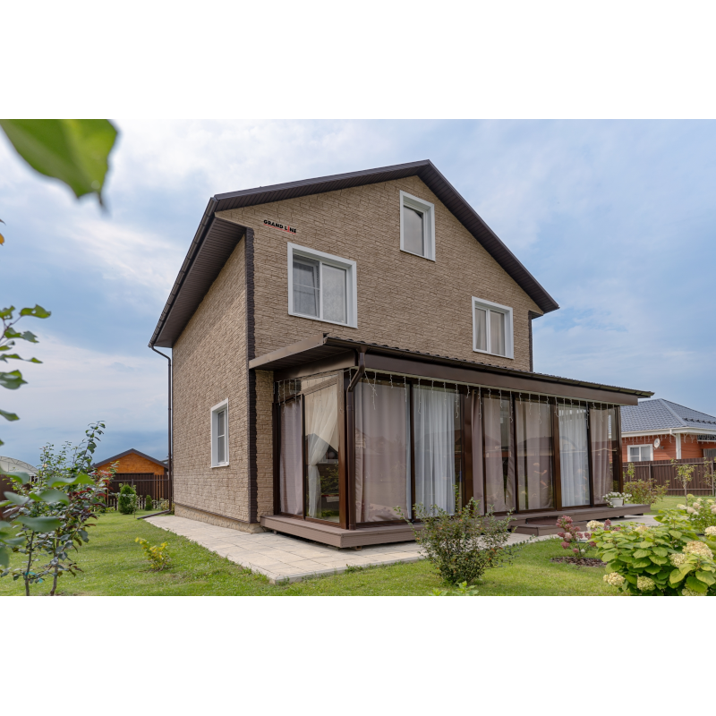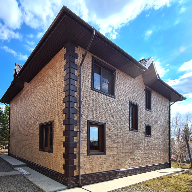 Фасадные панели могут использоваться как для оформления фасада целиком, так и для облицовки фундамента, выделения отдельных деталей.