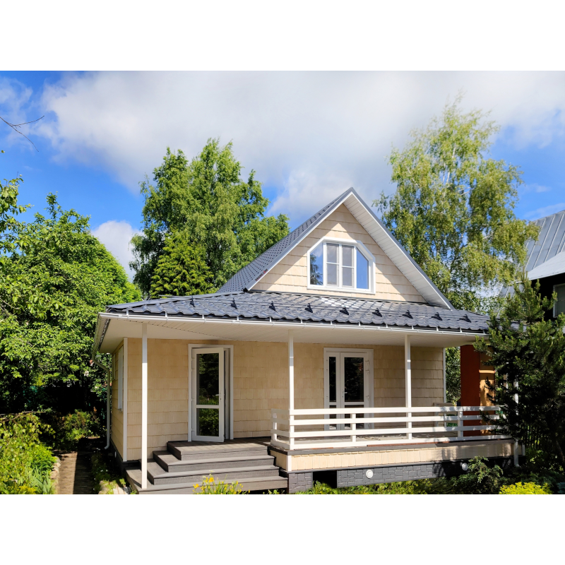 Фасадная панель Я-Фасад Сибирская дранка Слоновая кость — оптимальное сочетание надежности и эстетичного вида. Материал точно имитирует вид натурального дерева: дом будет выглядеть респектабельно, при этом отделка не вызовет сложностей и прослужит долго без особых усилий с вашей стороны.