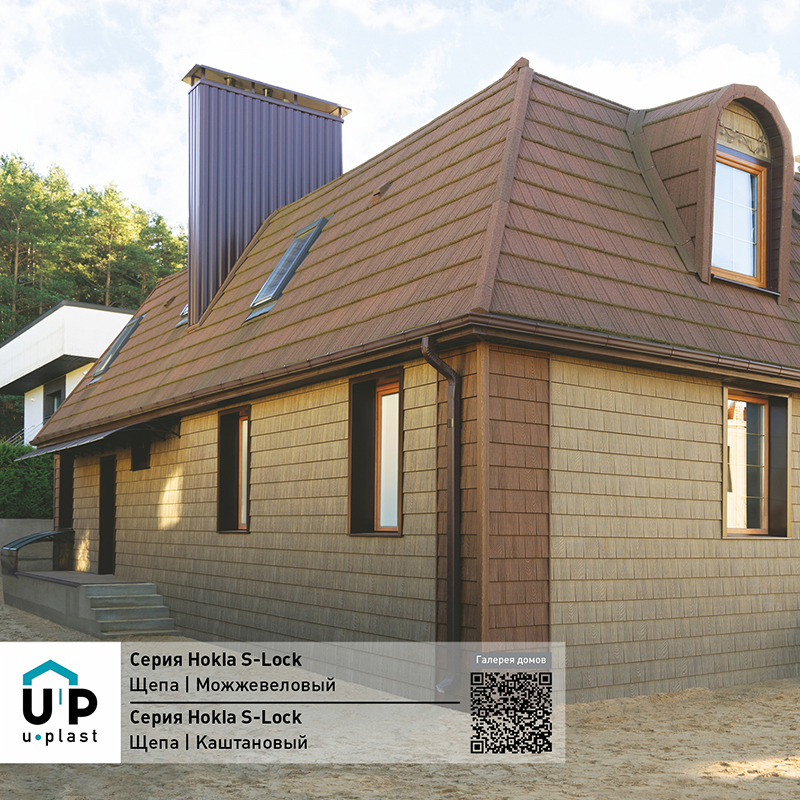 Фасадная панель Ю-Пласт Hokla S-Lock Щепа Можжевеловый — оптимальное сочетание надежности и эстетичного вида. Материал точно имитирует вид натурального дерева: дом будет выглядеть респектабельно, при этом отделка не вызовет сложностей и прослужит долго без особых усилий с вашей стороны.