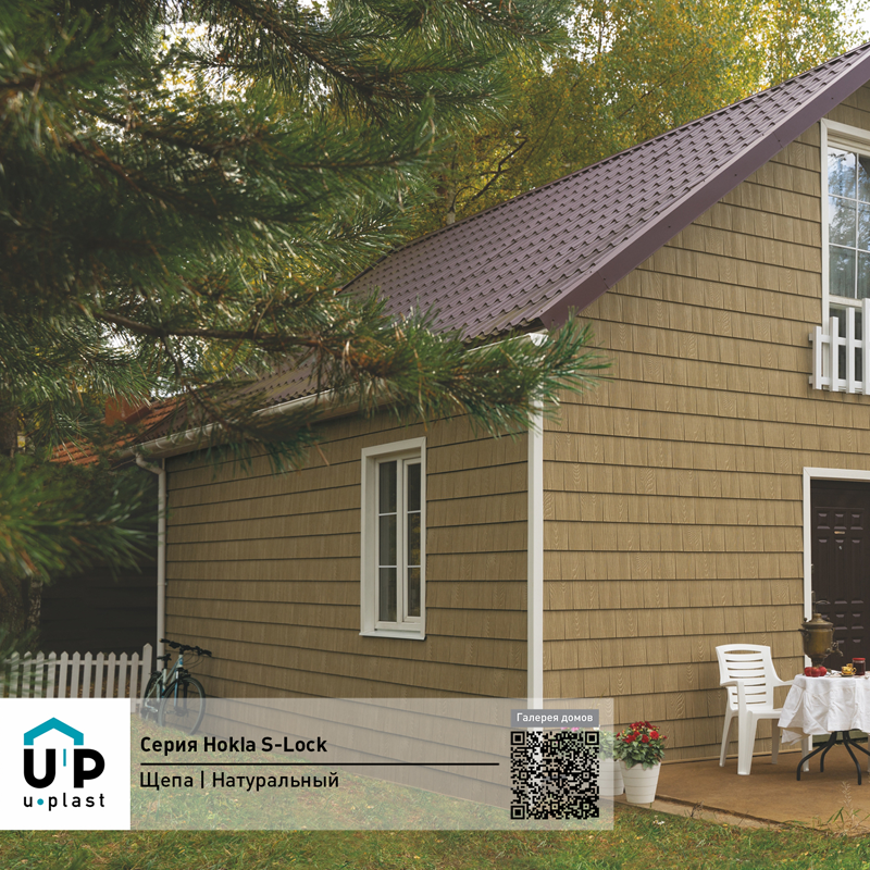 Фасадная панель Ю-Пласт Hokla S-Lock Щепа Орех натуральный — оптимальное сочетание надежности и эстетичного вида. Материал точно имитирует вид натурального дерева: дом будет выглядеть респектабельно, при этом отделка не вызовет сложностей и прослужит долго без особых усилий с вашей стороны.