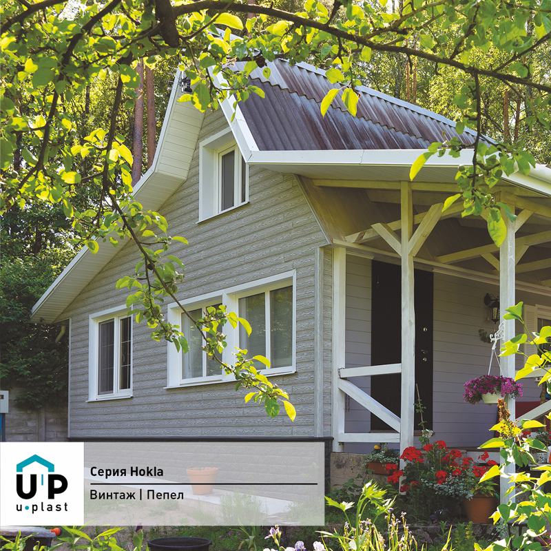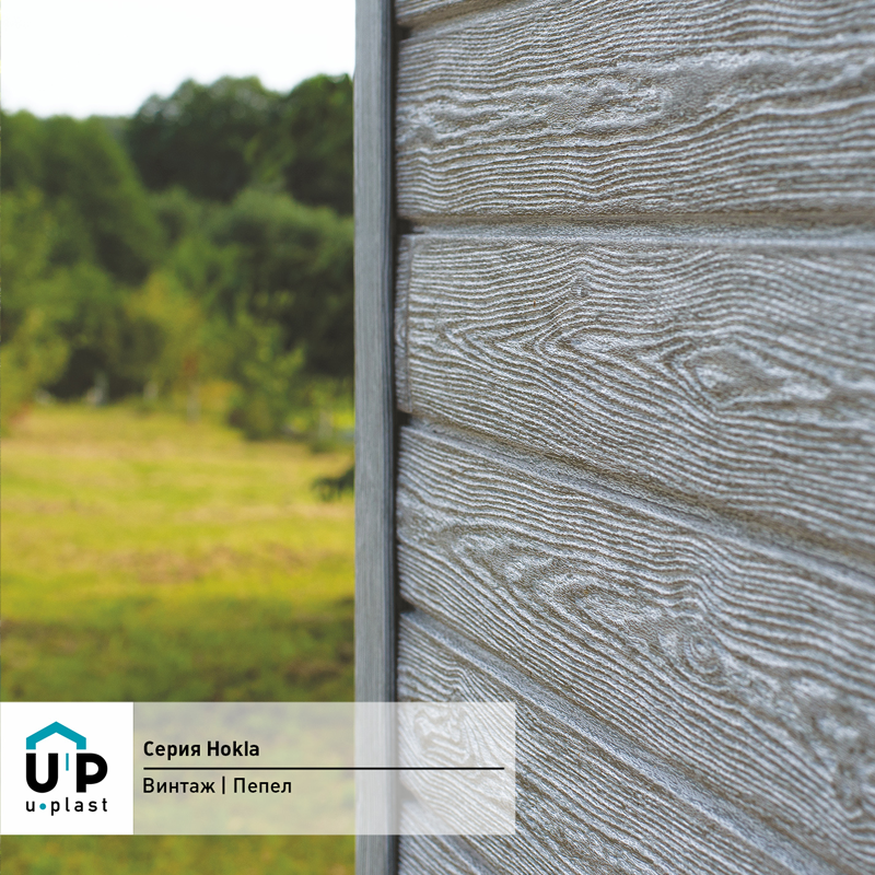 Фасадная панель Ю-Пласт Hokla Винтаж Пепел — оптимальное сочетание надежности и эстетичного вида. Материал точно имитирует вид натурального дерева: дом будет выглядеть респектабельно, при этом отделка не вызовет сложностей и прослужит долго без особых усилий с вашей стороны.