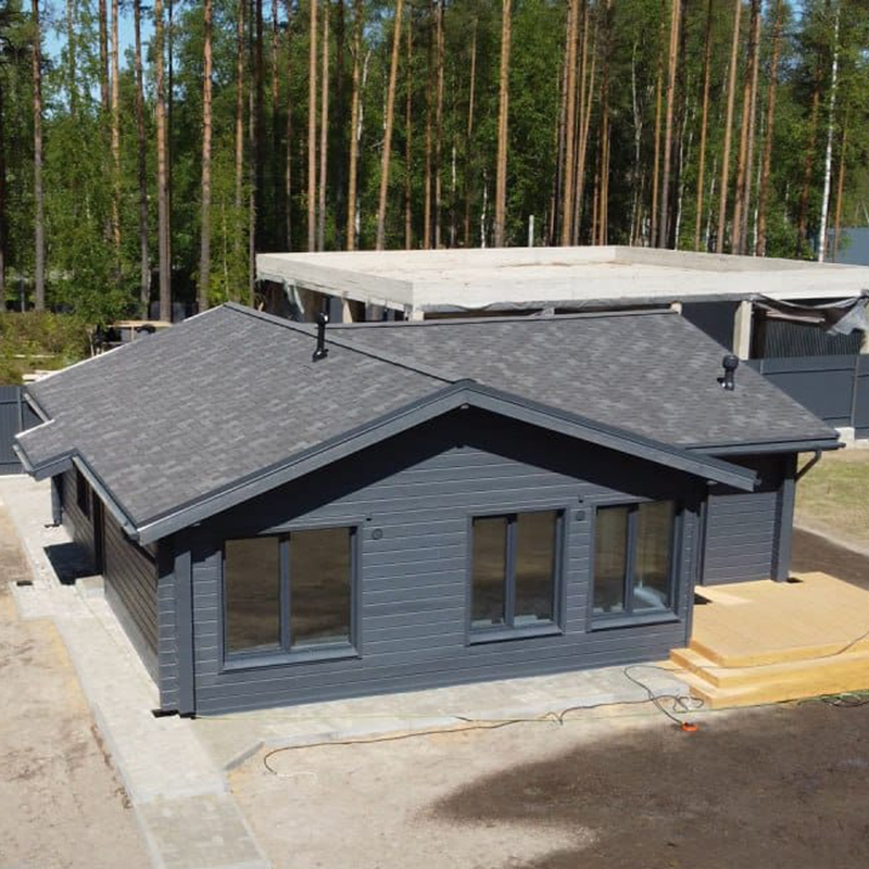 Рациональное решение при строительстве жилых домов и коттеджей – гибкая черепица Kerabit коллекции «Лапландия» из SBS-битума с базальтовой посыпкой. Оригинальная нарезка гонта в форме многоугольников различной конфигурации и глубокий антрацитовый оттенок со случайными затемнениями идеально подойдут для современных архитектурных решений. Срок службы материала в среднем оценивается в 25 лет, однако даже при самых неблагоприятных внешних факторах кровля сохраняет целостность гораздо дольше. Мягкое кровельное покрытие эффектно выглядит и надежно защищает дом от дождей и других осадков, а также шума, холода и ветра.