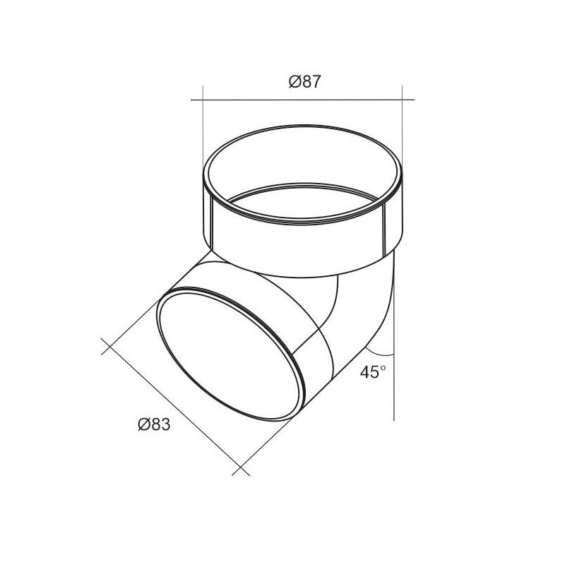Колено трубы ПВХ 45° D87 мм цвета Шоколад от Гранд Лайн. Элемент водосточной системы, применяется для отведения водосточной трубы от выпускной воронки, расположенной у края ската кровли, к стене, а также от выступающих элементов фасада.