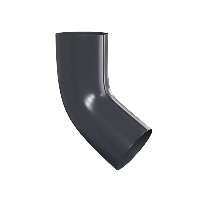 Колено трубы D100 мм 60° темно-серое RAL7024 с покрытием Пластизол серии МП Престиж от Металл Профиль. Элемент водосточной системы, применяется для отведения водосточной трубы от выпускной воронки, расположенной у края ската кровли, к стене, а также от выступающих элементов фасада.