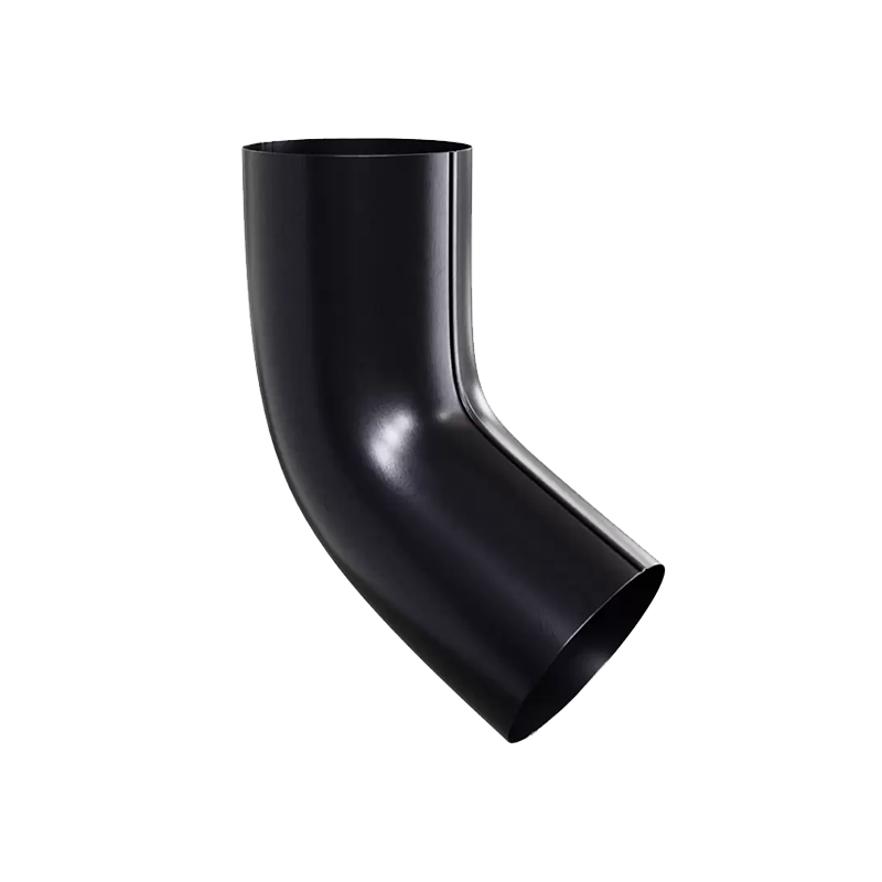 Колено трубы D100 мм 60° черное RAL9005 с покрытием PURMAN серии МП Престиж от Металл Профиль. Элемент водосточной системы, применяется для отведения водосточной трубы от выпускной воронки, расположенной у края ската кровли, к стене, а также от выступающих элементов фасада.