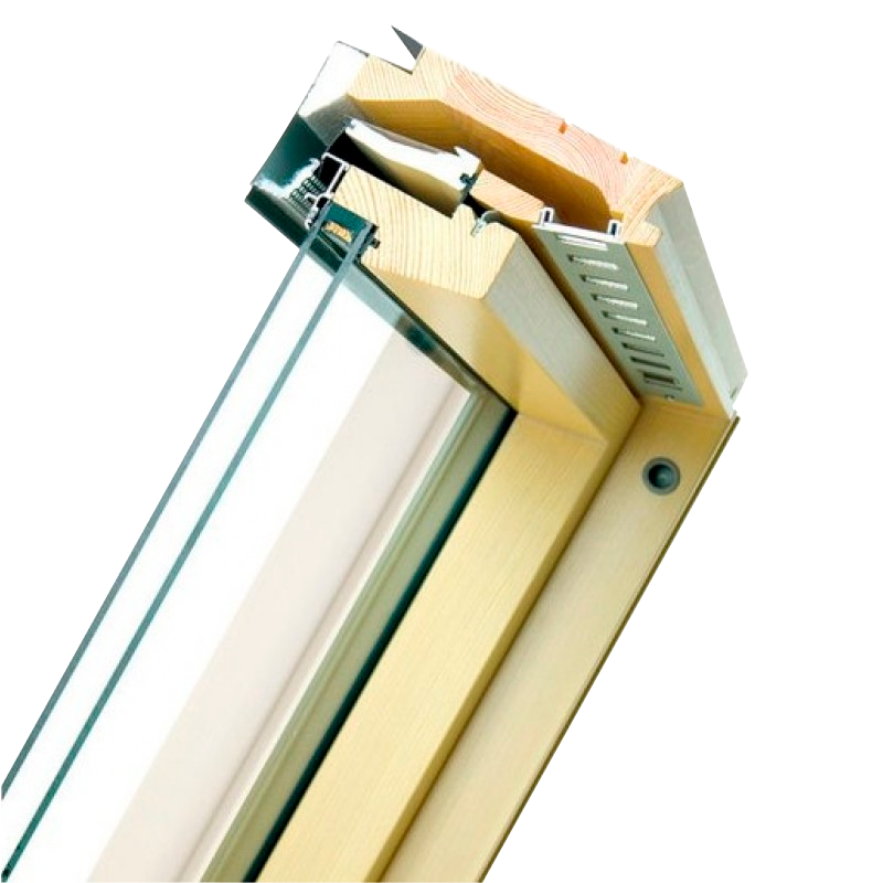 Среднеповоротное окно FTP-V произведено из высококачественной древесины сосны, пропитано антисептиком и покрыто двумя слоями полиакрилового лака на водной основе.
