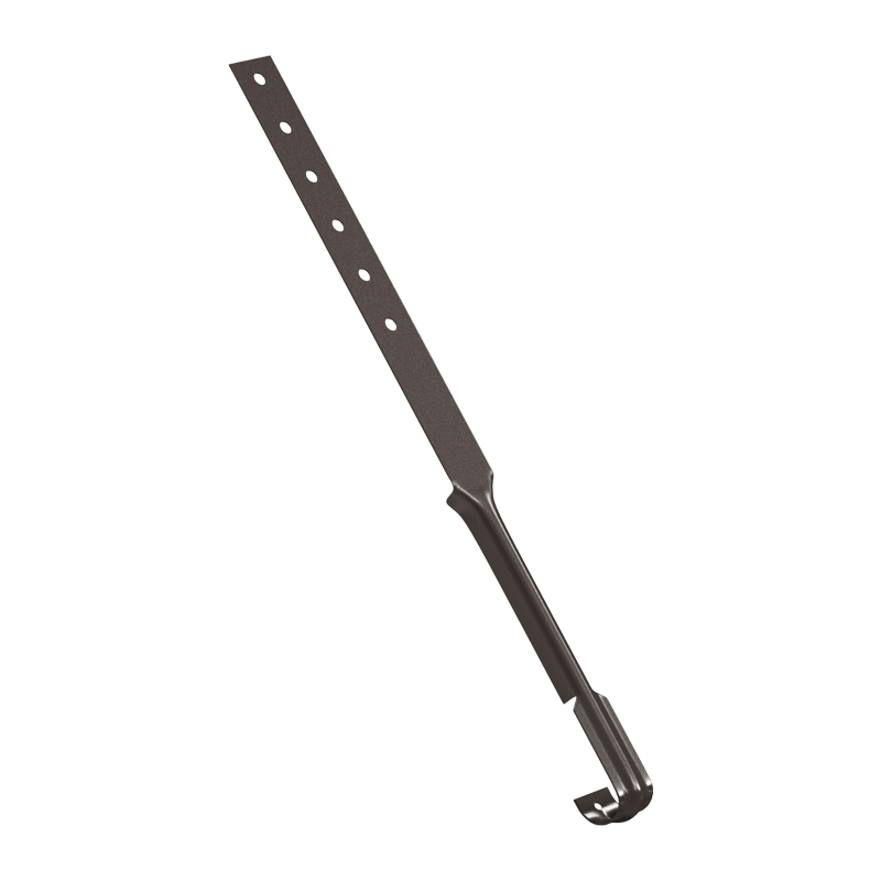 Поддержка водосточного желоба D150 мм RR32 Темно-коричневая с покрытием Полиуретан (PUR) от производителя Аквасистем. Обеспечивает дополнительную поддержку желоба в сложных местах кровельных систем, в ендовах, или при крутых уклонах кровли, где возможен лавинообразный сход снега. Может устанавливаться на всех видах кровли.