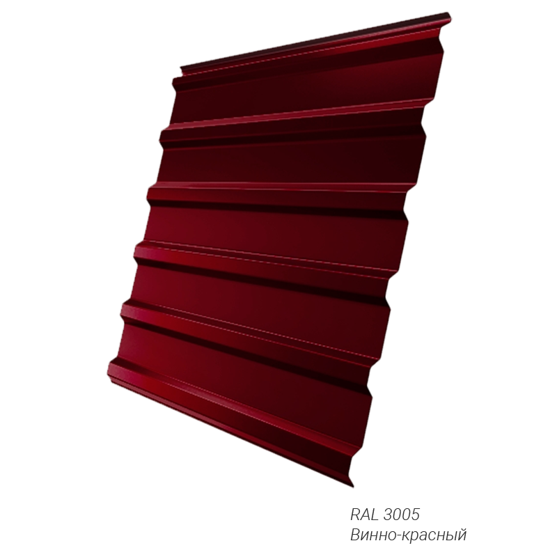 Профнастил имеет профиль C20R (высотой 20 мм). Толщина стали составляет 0,5 мм. Колеровка — заказная. Можно подобрать идеальный цвет для любого проекта.