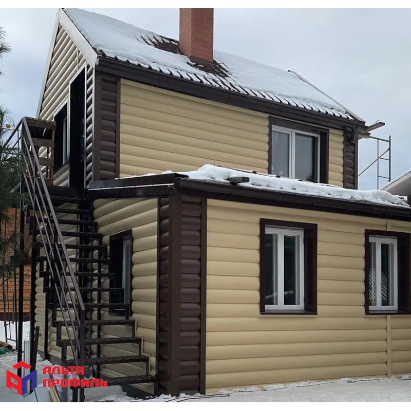 Виниловая панель двухпереломного сайдинга длиной 3,1 м (3100 мм) из коллекции Блокхаус Престиж от Альта-Профиль. Сайдинг объемной формы, имитирующий оцилиндрованное бревно, дополнен тиснением под натуральное дерево, Панель из винила под бревно отличное решение для любителей традиционного стиля, она ничуть не уступает в красоте натуральной древесине, в то же время, данный материал намного дешевле и не требует дополнительного ухода. Виниловый блок-хаус морозоустойчив и сохраняет ударопрочность при температуре до -60°С, поэтому он идеально подходит для северных регионов страны. Купить виниловый сайдинг Блокхаус Престиж ВН-02 Золотистый от Альта-Профиль по выгодной цене вы можете в нашем интернет-магазине Удачная покупка.