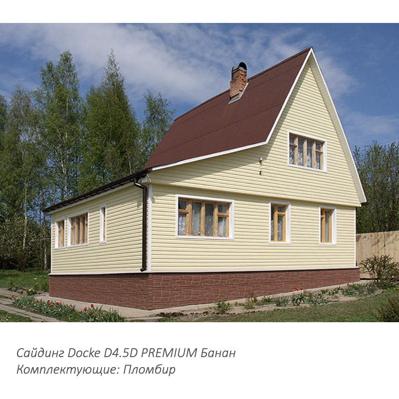 Классический виниловый сайдинг Docke из коллекции PREMIUM D4.5D цвета «Банан». За счет светлого мягкого оттенка панелей стены дома будут поглощать меньше солнечного света. Такой цвет часто используется на больших площадях по всему фасаду. Пластиковый сайдинг Дёке Премиум выполнен по высоким стандартам из высококачественного материала на европейском оборудовании специально для российского климата. Профиль «корабельный брус» – один из самых популярных в загородном домостроении. Глубина и рельеф его поверхности соответствует радиальному распилу древесины дорогих пород. Купить сайдинг Деке Премиум длиной 3,66 м по приятной цене вы можете в нашем интернет-магазине. Наши менеджеры рассчитают комплектацию и ответят на все вопросы!