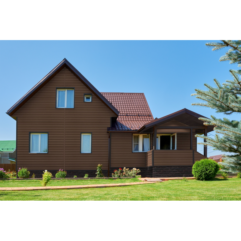 Сайдинг Grand Line D4,8 GL тёмно-бежевого цвета предназначен для фасадных акцентов и подчеркивания основной цветовой гаммы, оттенок неяркий и немаркий.