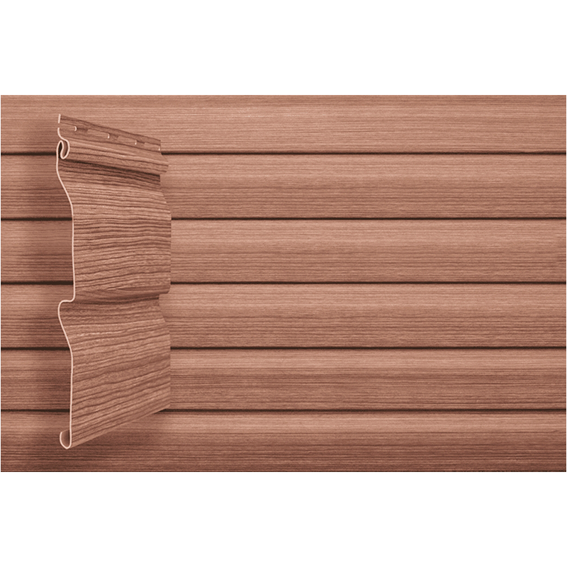 При производстве сайдинга и комплектующих Tundra D4 GL (профиль Корабельный брус) используются уникальные технологии нанесения краски. Внешняя поверхность цвета Рябина получается как у натурального дерева.