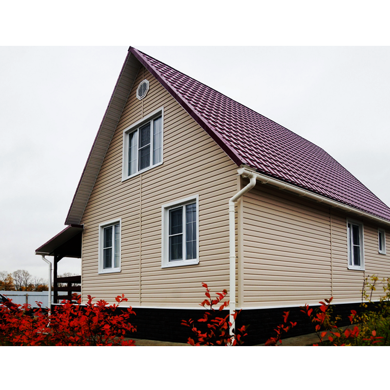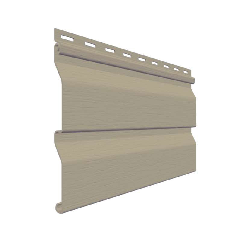 Сайдинг серии XL от Гранд Лайн c увеличенной высотой панели. Полная высота — 259 мм, полезная — 224 мм. Классический двухпереломный сайдинг Бежевого цвета с ненавязчивым тиснением поверхности под рисунок натурального дерева. Длина панели 3,6 м. в сочетании с шириной сайдинга позволяет сэкономить на аксессуарах для монтажа за счет меньшего количества стыков и ускорить выполнение работ.