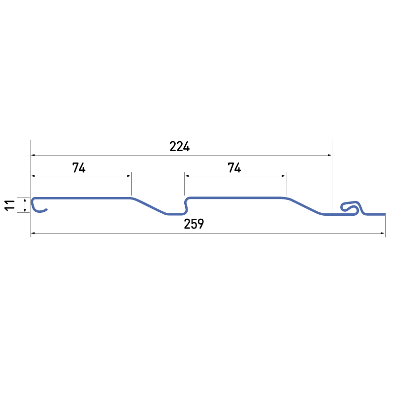 Длина изделия составляет 3600 мм. Высота — 224 мм. Вид профиля — Корабельный брус: прост в монтаже, не нагружает конструкцию здания.