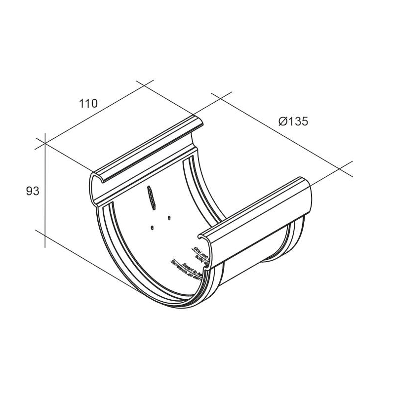 Соединитель желоба Grand Line ПВХ Дизайн D135 Черный RAL9005