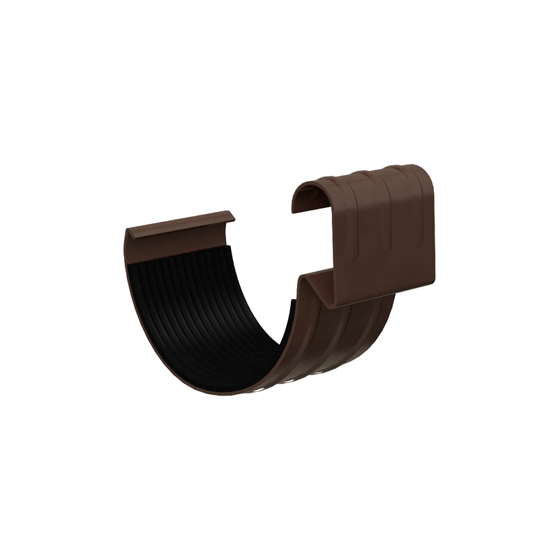 Соединитель желоба D125 мм коричневый RAL8017 с покрытием Пластизол серии МП Престиж от Металл Профиль. Устанавливается в местах соединения водосточных желобов, используется для герметизации стыков и придает дополнительную прочность водостоку.