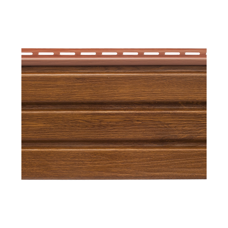 При производстве сайдинга и комплектующих {Коллекция} (профиль {Форма сайдинга/комплектующего}) используются уникальные технологии нанесения краски. Внешняя поверхность цвета Дуб золотистый получается как у натурального дерева.