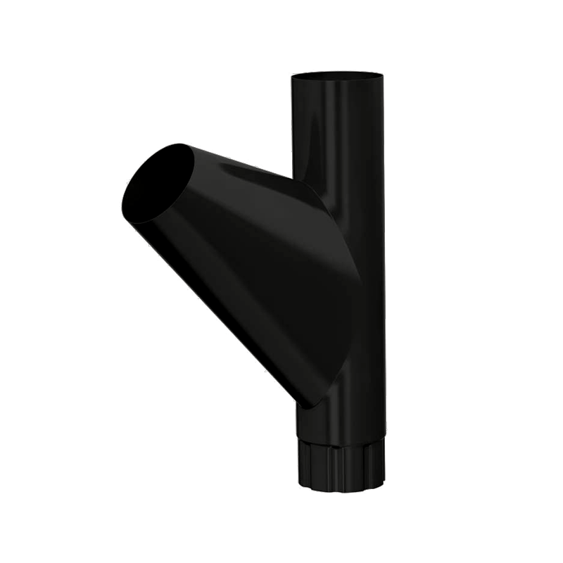 Тройник трубы D100 мм черный RAL9005 с покрытием PURMAN серии МП Престиж от Металл Профиль. Применяется для соединения двух водосточных труб в один общий сток.