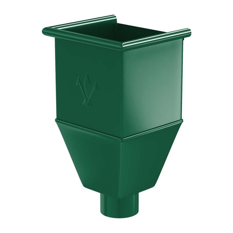 Воронка водосборная удлинённая D90 мм RAL6005 Зеленый мох с покрытием Полиуретан (PUR) от производителя Аквасистем. Элемент водосточной системы, применяется для сбора воды со сложных форм крыш, фальцевых кровель, в тех случаях, когда сток не организован посредством желоба.